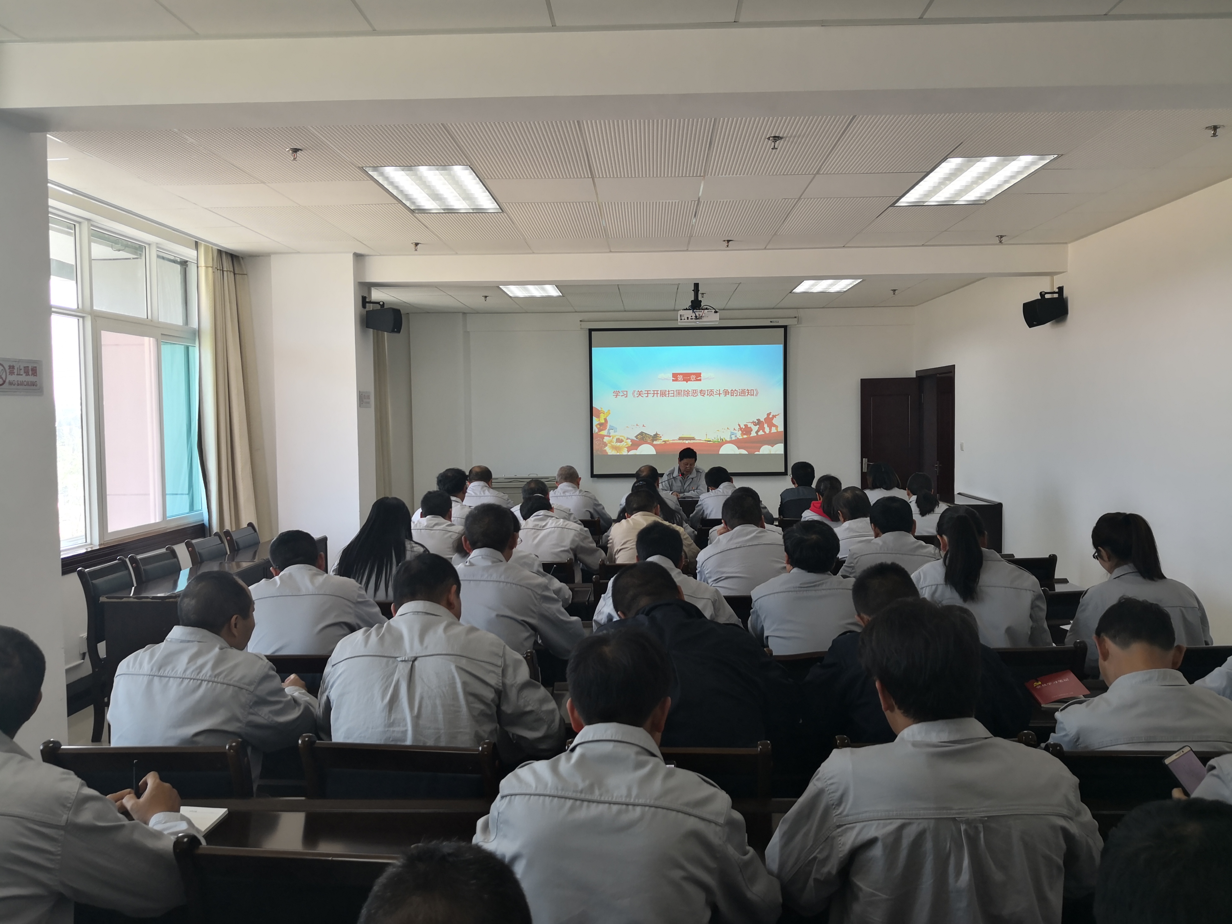 為進(jìn)一步貫徹落實(shí)中共中央、國務(wù)院關(guān)于開展掃黑除惡專項(xiàng)斗爭的重要指示精神,不斷推動(dòng)掃黑除惡專項(xiàng)斗爭向縱深開展,在掃黑除惡專項(xiàng)斗爭中進(jìn)一步發(fā)揮黨員先鋒模范作用和黨組織戰(zhàn)斗堡壘作用,教育引導(dǎo)公司機(jī)關(guān)黨員領(lǐng)導(dǎo)干部提高政治站位,帶頭抵制黑惡勢力,帶頭參與掃黑除惡專項(xiàng)斗爭,機(jī)關(guān)黨總支部根據(jù)曲靖市委組織部、羅平縣委組織部和公司黨委的要求和部署,于2019年3月29日下午開展“掃黑除惡·勇當(dāng)先鋒”主題黨課活動(dòng)。本次黨課由公司工會(huì)主席秦懷坤主講。