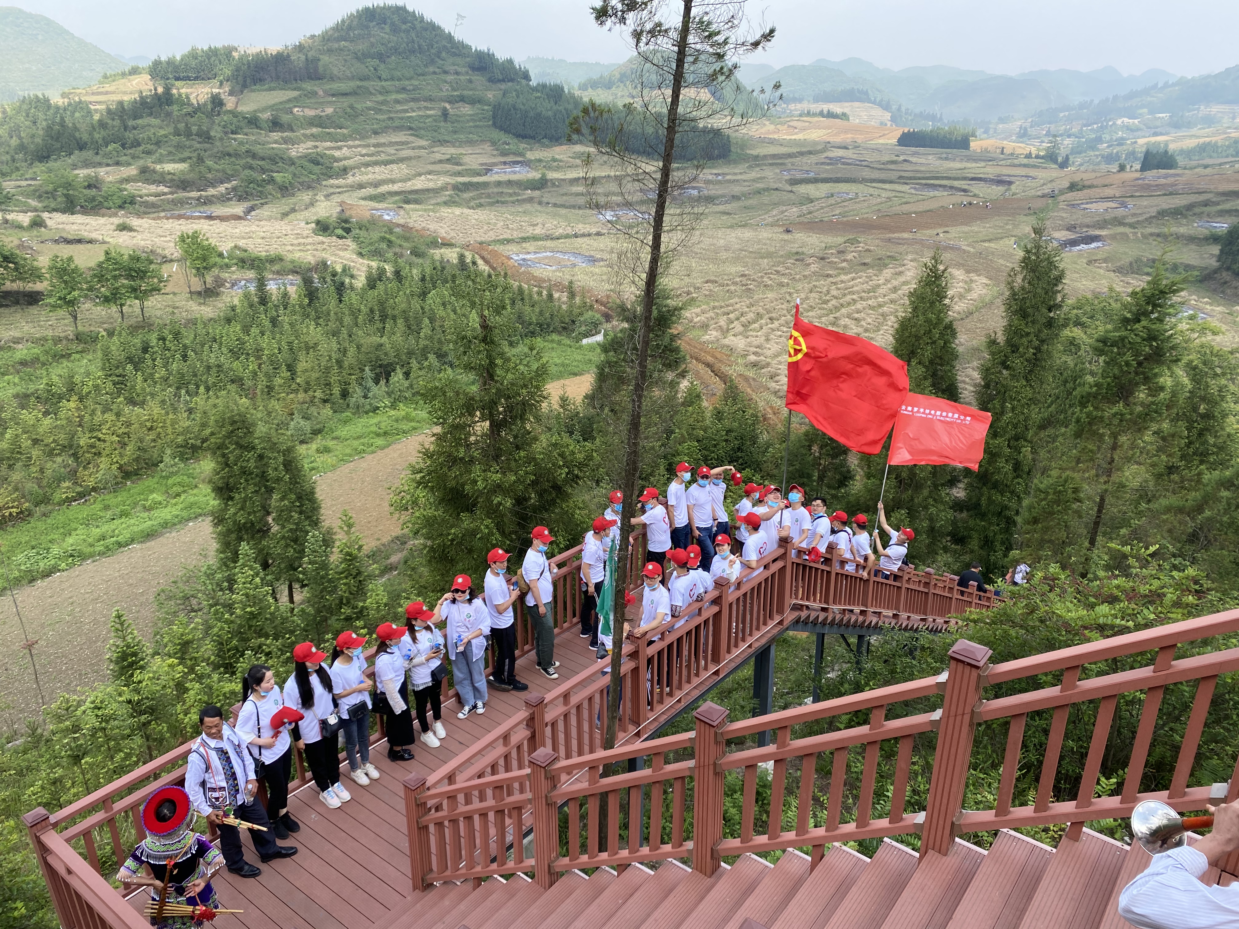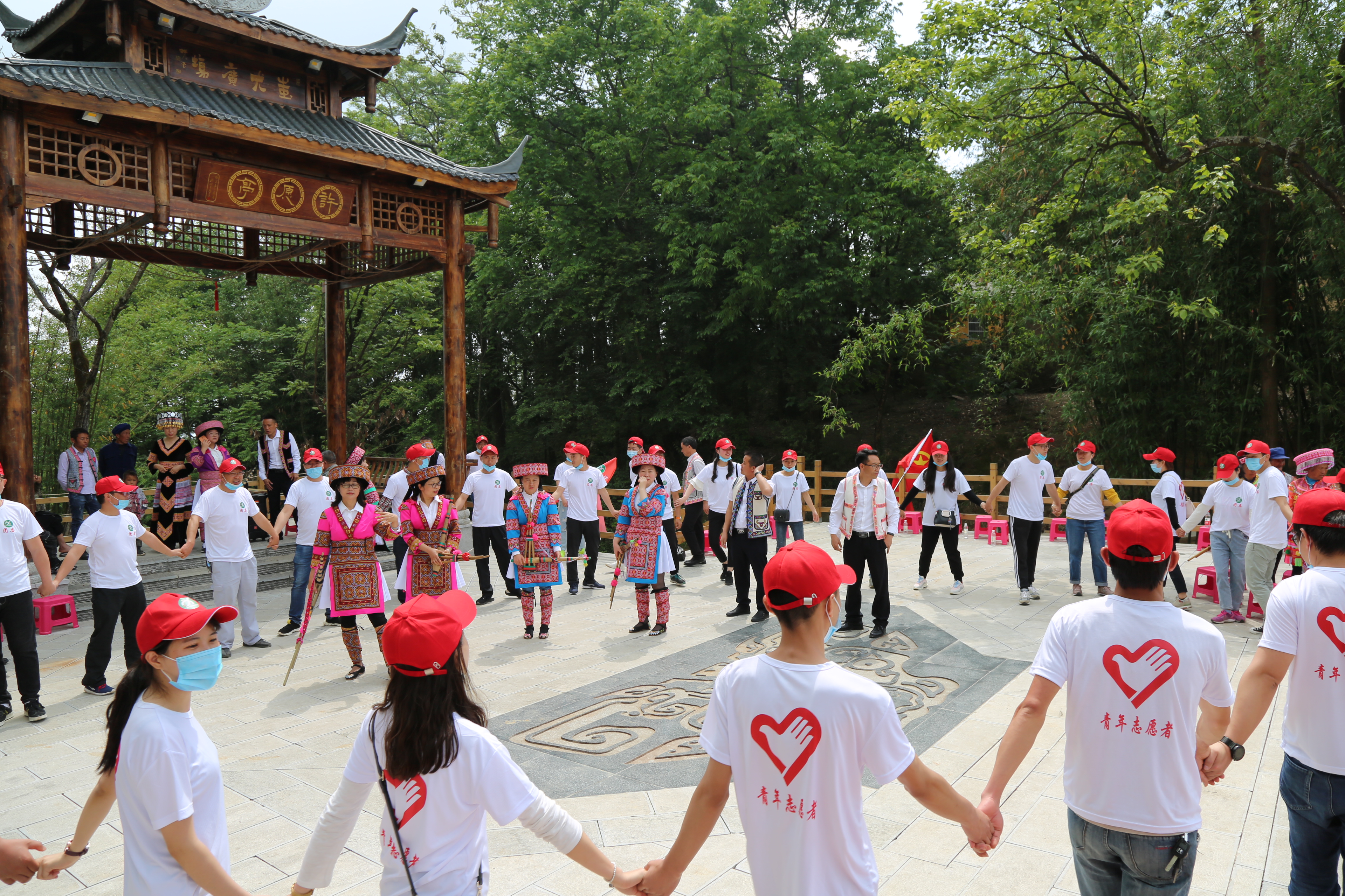5月1日上午9:00,公司40余名青年代表身著統一的隊服和隊帽,乘車來到大水井鄉棠梨凹苗族文化村進行戶外團建活動。五月的棠梨凹,陽光明媚、綠樹成蔭。一路上大家歡聲笑語、互相關心、互相幫助,欣賞了最美十萬峰林,享受了苗族迎賓的最高禮儀,品嘗了最美味的苗家羊湯鍋,體驗了現場舂粑粑、石磨、蕩秋千等有趣的娛樂活動,也和當地苗族村民一起載歌載舞。處處呈現出團結友愛,歡快和諧的氣氛。